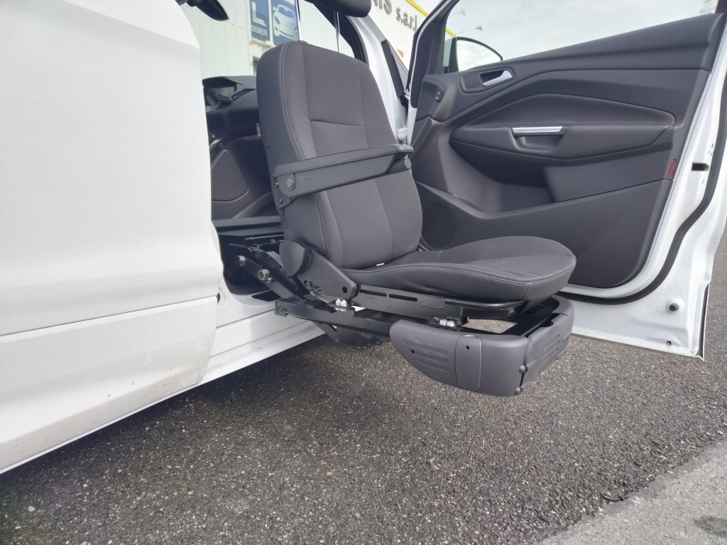 Le Turny Evo est un élévateur de siège pivotant électrique qui sort complètement le siège hors du véhicule et l'abaisse à une hauteur programmable, facilitant le transfert depuis un fauteuil roulant ou pour les personnes ayant des difficultés à monter en voiture. Nous avons monté cette embase sur un Ford Kuga (modèle avant 2013), compatible avec les SUV grâce à sa grande amplitude de rotation, levage et déplacement avant/arrière électriques, contrôlés par une commande intuitive à 4 boutons ou via app smartphone. Le siège choisi, Caroseat Flex, est un modèle ajustable pour adultes et enfants, avec appui-tête rétractable, cale-tronc réglable, coussin gonflable pour pression et maintien postural optimal ; il s'adapte parfaitement au Turny Evo pour un confort supérieur et une sécurité testée en collision.